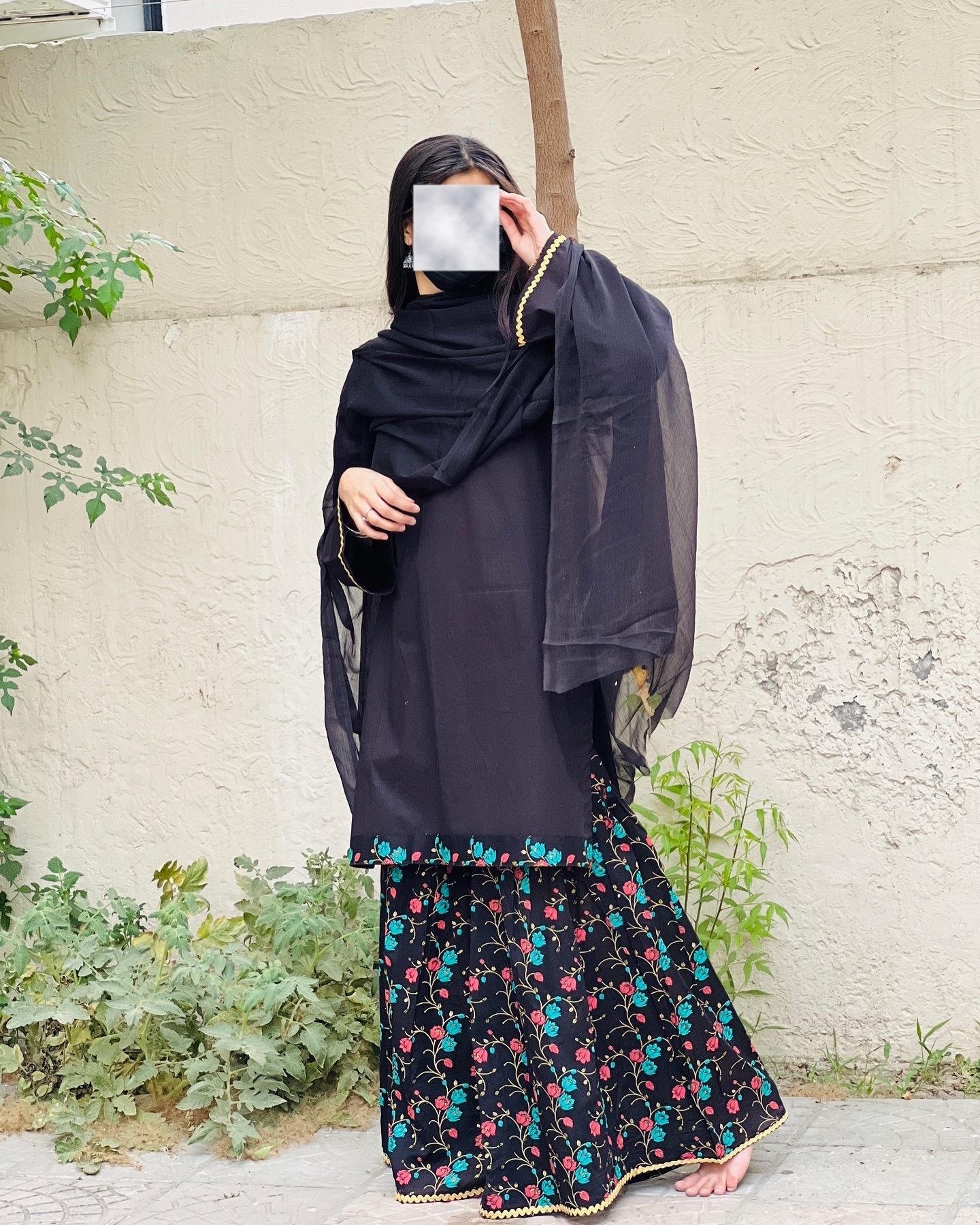 Black with Multicolor Embroidery Garara Original price was: ₨4,900.Current price is: ₨3,850.