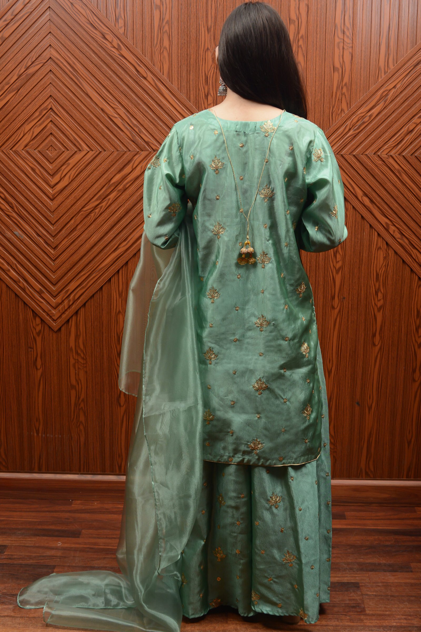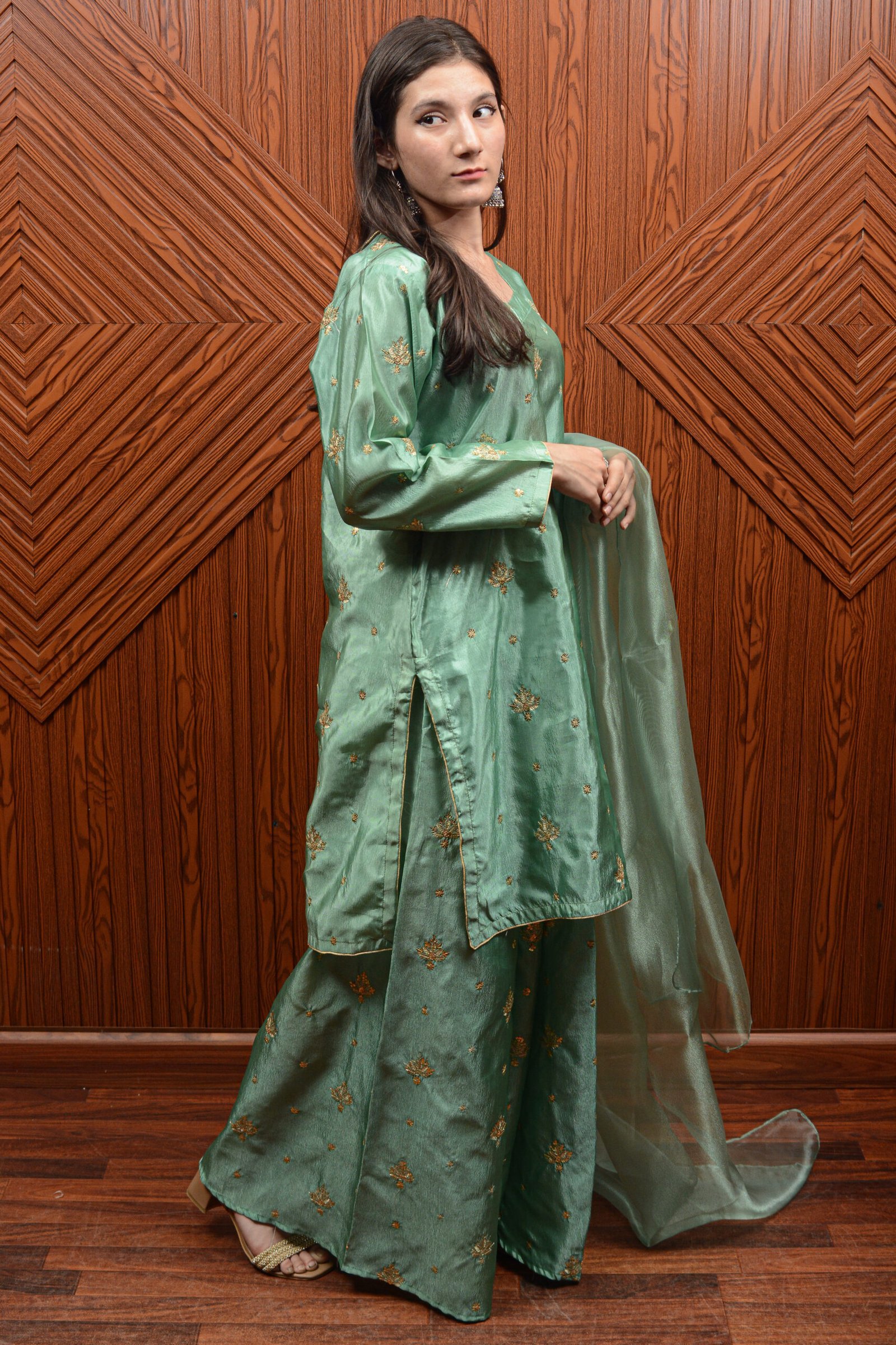Elegant Katan Silk Green Dress – Traditional Charm Meets Modern Style