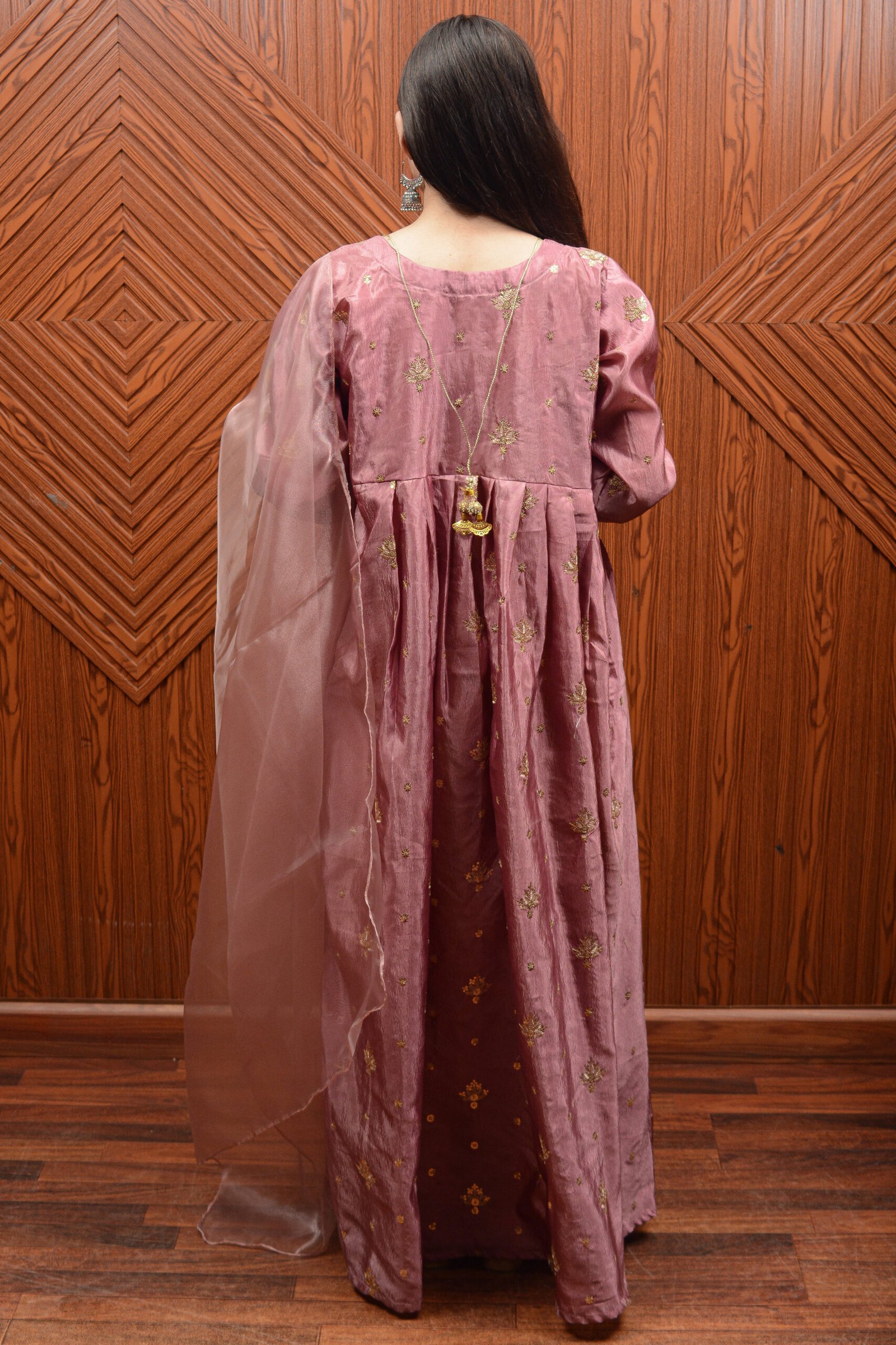 Embroidered Pink Silk Dress with Sheer Dupatta
