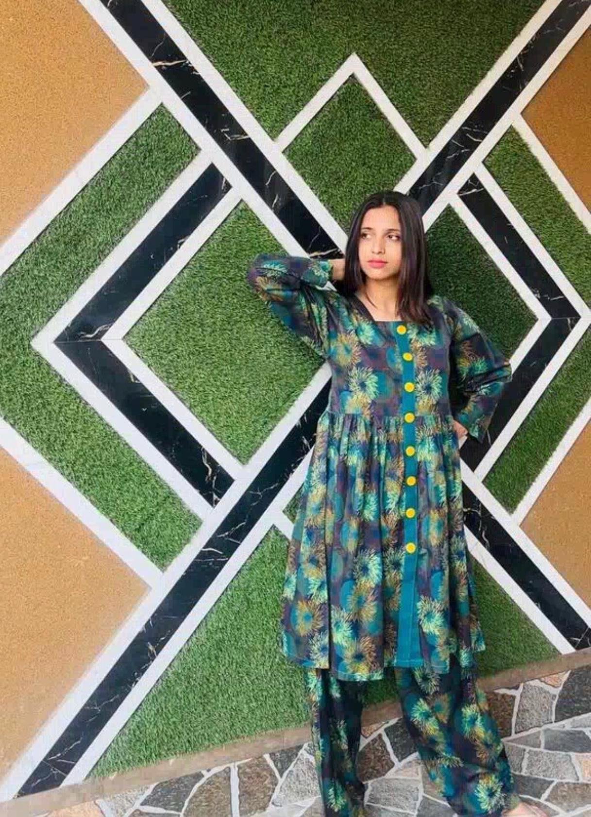 A beautiful blend of teal blue 💙, mustard yellow 💛, and olive green 🌿 on a dark brown base 🤎—this outfit brings nature-inspired elegance with a pop of color! Perfect for casual chic vibes with a touch of tradition ✨.