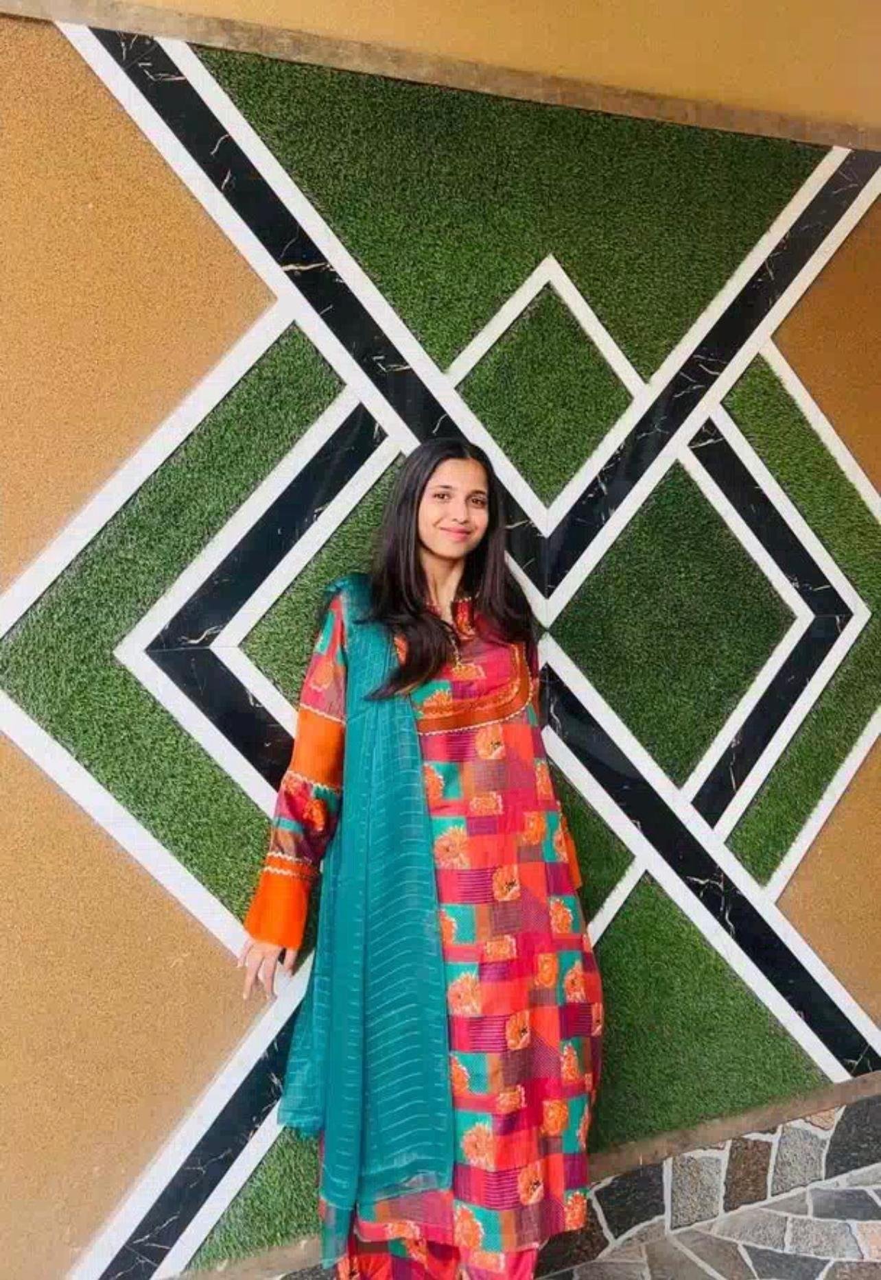 Bright Pink, Teal Blue, and Orange – A vibrant and eye-catching combination where bright pink adds a playful charm, teal blue brings a calming contrast, and orange gives the outfit a bold, festive touch. Together, they create a lively and colorful traditional look perfect for cheerful occasions