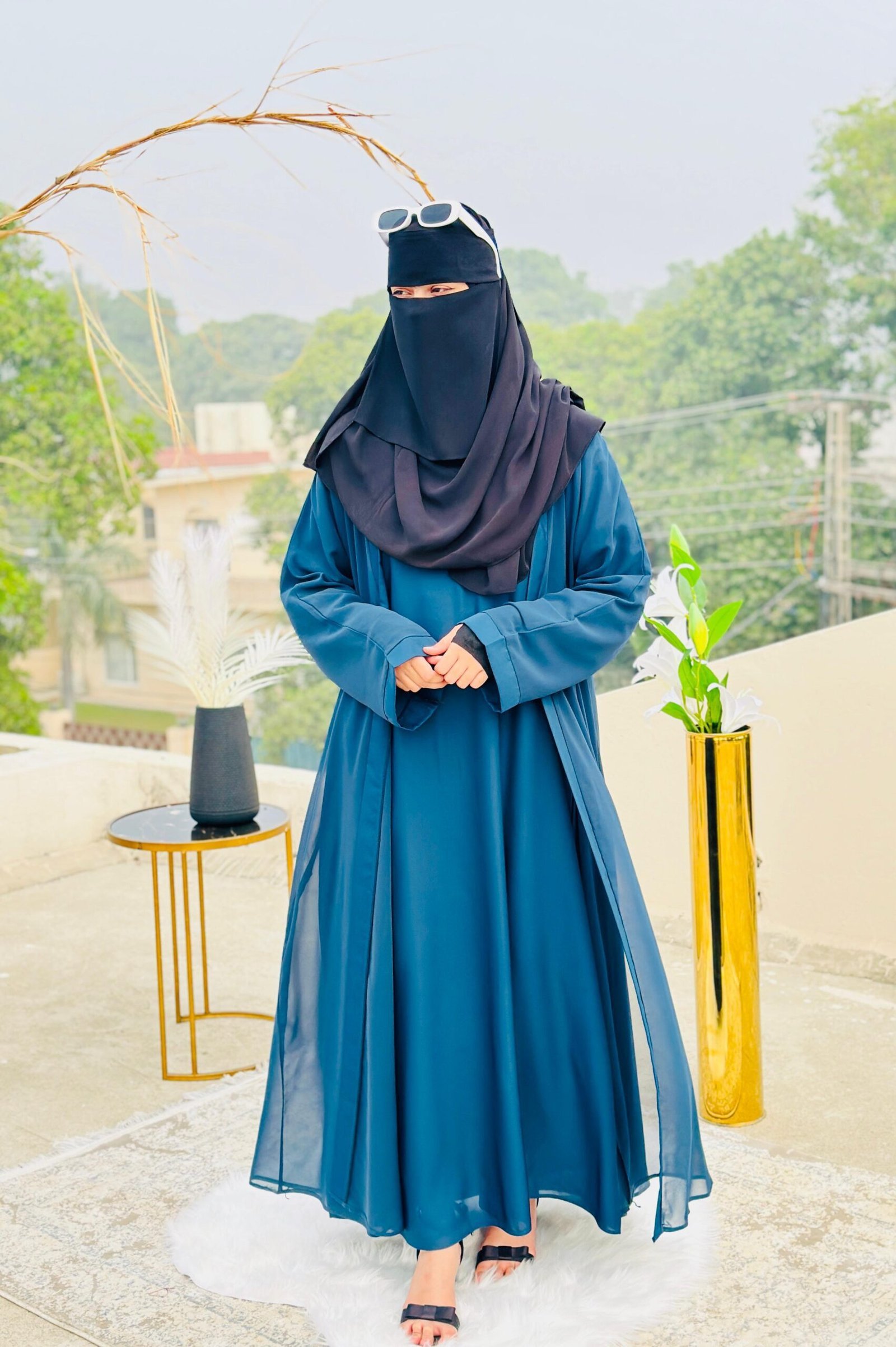 Teal Blue Abaya with Black Niqab | Elegant Modest Fashion by Libaas e Haya